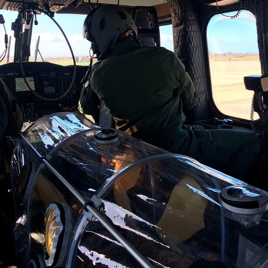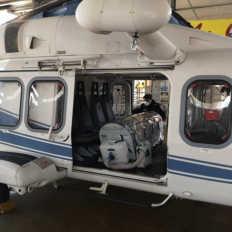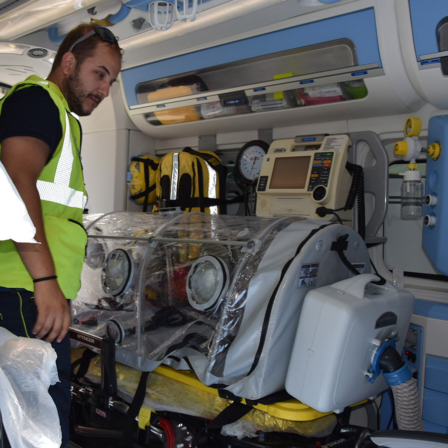 Ce dispositif peut être placé dans n'importe quelle ambulance pour un transport terrestre et est certifié pour être embarqué dans un avion de sauvetage, qu'il s'agisse d'un hélicoptère ou d'un avion.