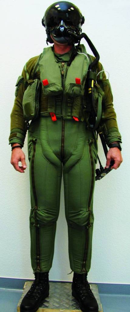 Les combinaisons des pilotes de chasse sont pressurisées pour permettre au sang de circuler normalement et éviter qu’ils perdent connaissance en vol. Ainsi ils peuvent supporter jusqu’à 9g (une fois de plus, l’homme s’est inspiré de la nature; en observant la physiologie des libelulles et des girafes). En plus ils ont des casques qui leurs permettent de s’approvisionner en oxygène.