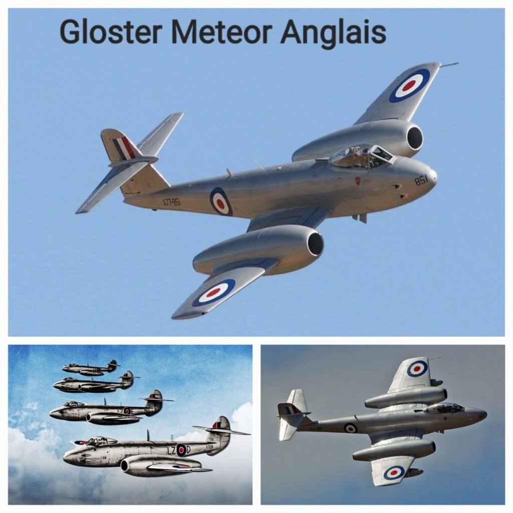 de combat à réactions, le « Gloster Meteor » qui a effectué son premier vol inaugural en mars 1943 et est entré en service en juillet 1944.